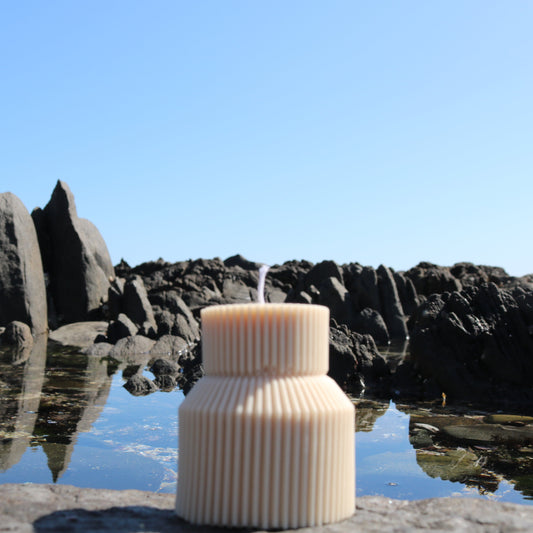 Ivory Two Tiered Ribbed Pillar Candle